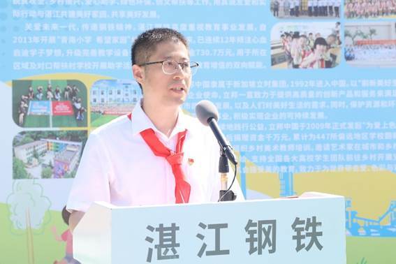 作为与立邦公益同行多年的“战友”,湛江钢铁党委书记、董事长韩仁义在现场表示:“湛江钢铁作为钢铁行业高质量发展的引领者和示范者,自扎根湛江以来,积极发挥央企担当,累计捐赠近四千万元,广泛参与脱贫攻坚、乡村振兴、爱心助学、绿色环保及创文帮扶等公益事业,有力推动了湛江‘百千万工程’的高质量发展。自‘大美宝钢 为爱上色’公益项目启动以来,我们已为经开区多所小学带来崭新的学习环境,用真诚与友爱为湛江学子铺就成长之路。未来,湛江钢铁将继续践行社会责任,积极参与公益事业,为湛江高质量发展贡献更多力量。”